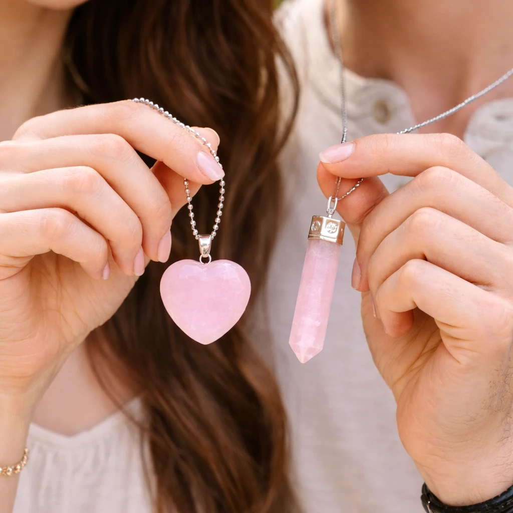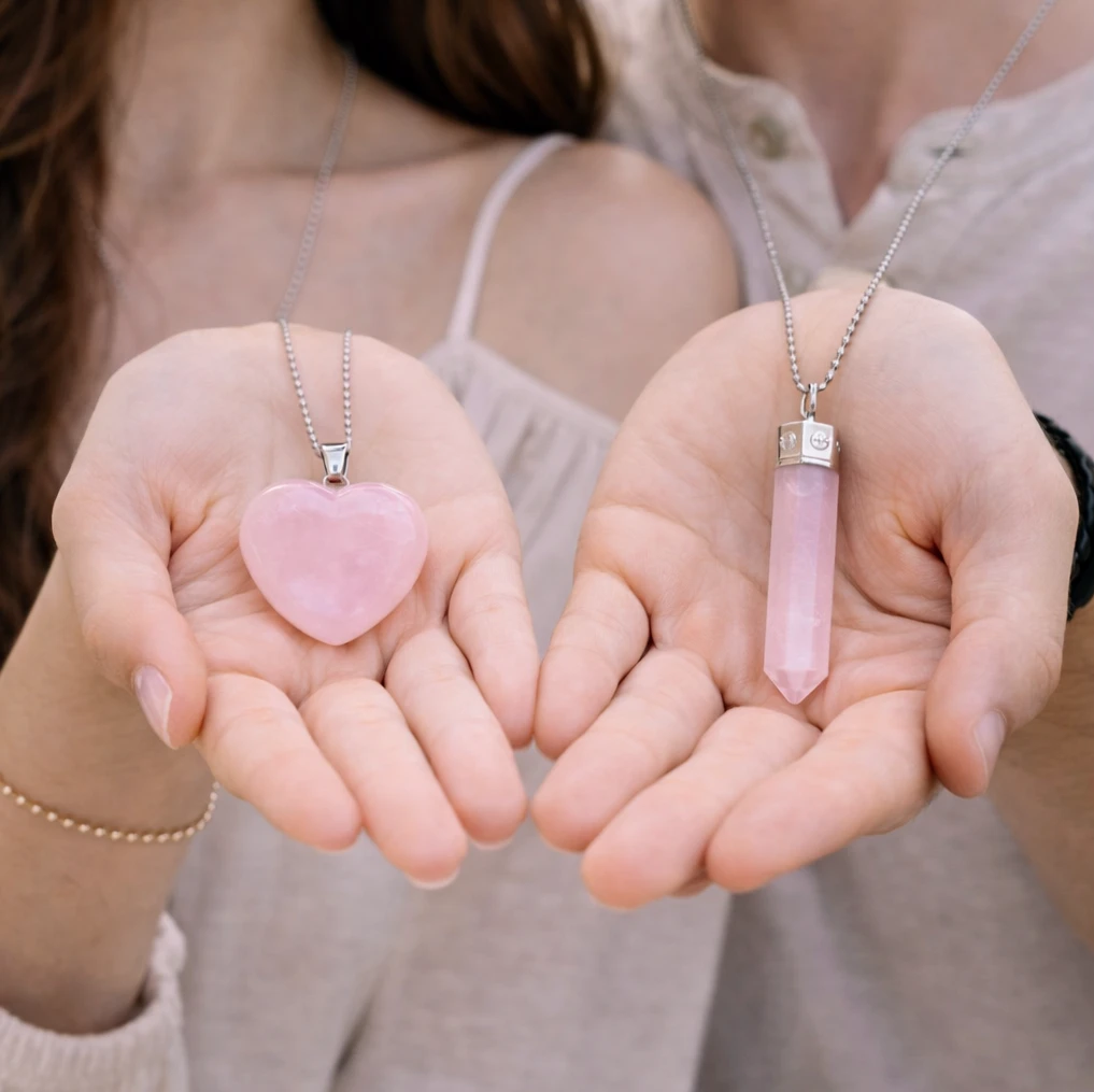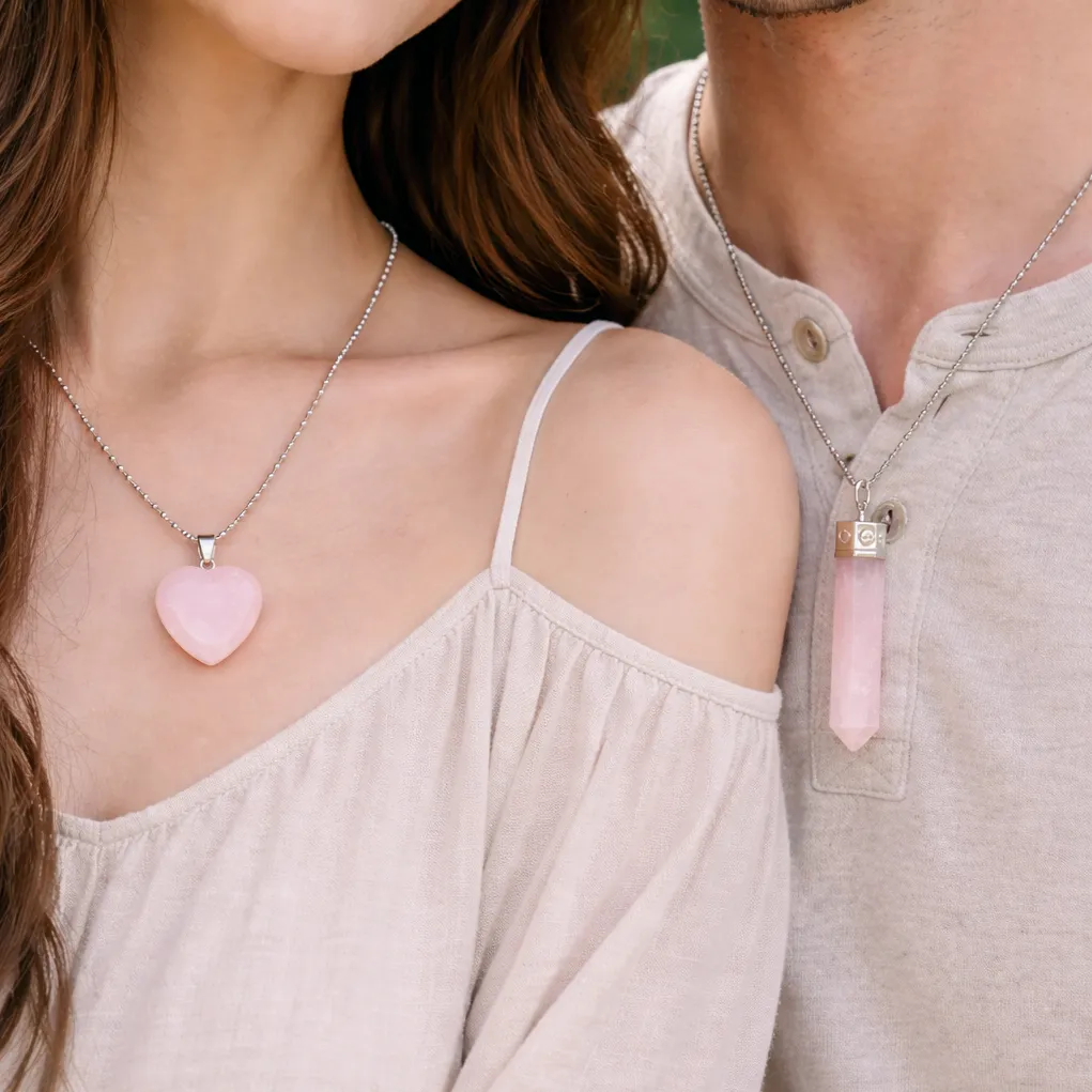 The Rose Quartz Heart & Pencil Pendant set is a powerful symbol of love, emotional balance, and deep connection. Crafted from natural Rose Quartz, the stone of unconditional love, this couple pendant set is designed to attract positive energy, strengthen relationships, and promote emotional healing.