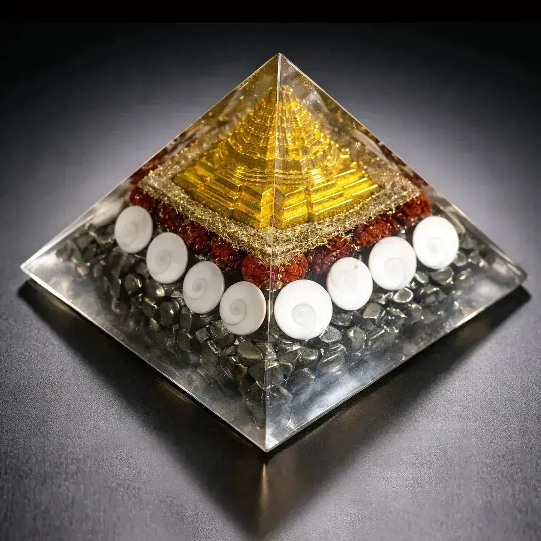 The Shree Yantra Pyramid from TARA MANTRA is a powerful sacred geometry product, crafted to attract wealth, prosperity, success, and positive energy. Embedded with energised stones and sacred Shree Yantra vibrations, this pyramid works as a spiritual amplifier for your home, office, or business space.
