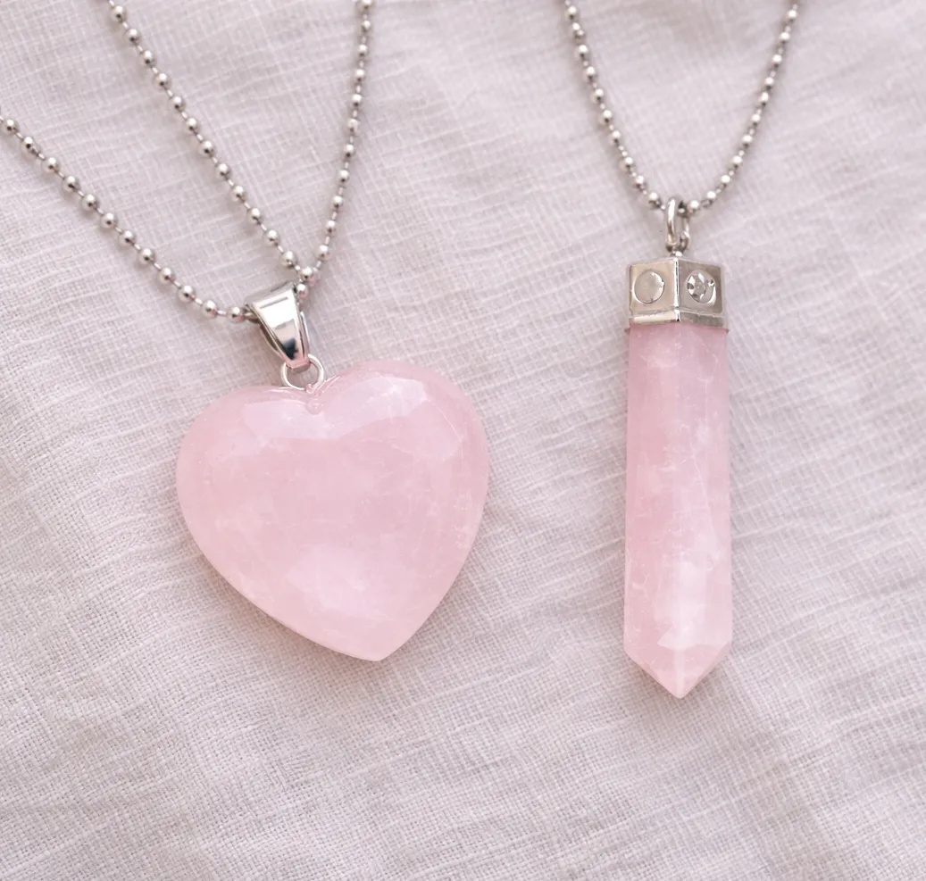 The Rose Quartz Heart & Pencil Pendant set is a powerful symbol of love, emotional balance, and deep connection. Crafted from natural Rose Quartz, the stone of unconditional love, this couple pendant set is designed to attract positive energy, strengthen relationships, and promote emotional healing.
